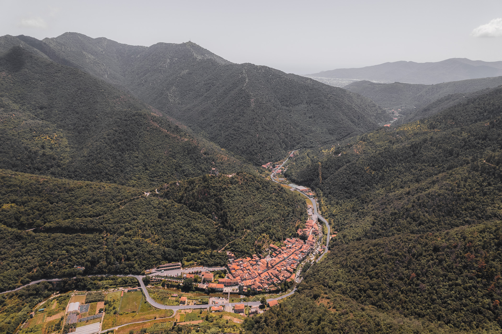 Il casello autostradale di Albenga funge da confine tra la pianura costiera e la rete delle quattro valli che dalle Alpi Marittime scendono verso il fiume Centa e la città: verso mare c’è Albenga, a monte invece si va verso la Val Neva e la Val Pennavaire, che salgono verso le creste calcaree del monte Galero e verso il Colle San Bernardo, oltre i quali si allunga la piemontese Val Tànaro.